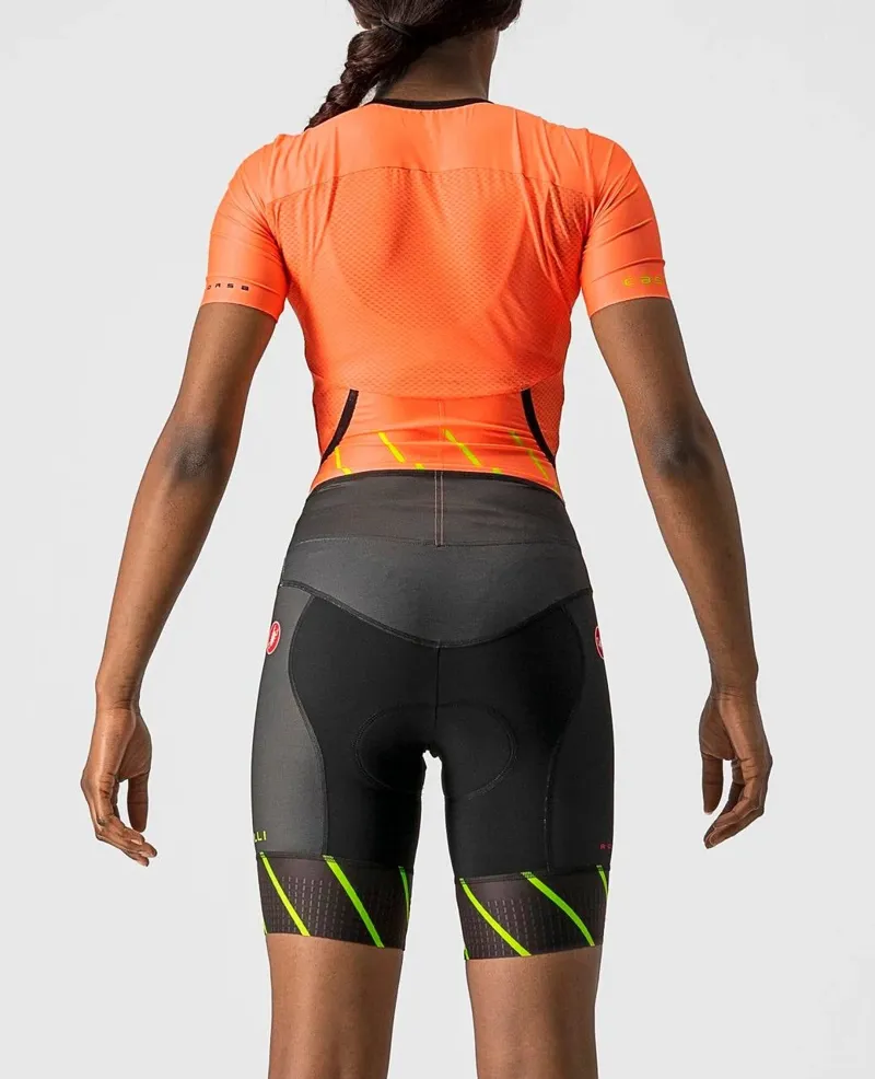 - Castelli’s Sanremo front opening makes it easier to bend for cycling and straighten out for the run and swim