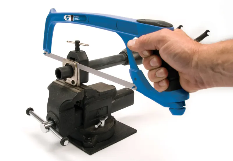 The SG-6 Threadless Saw Guide ensures a straight, clean cut on 1" (25.4mm), 1-1/8" (28.6mm) and 1-1/4" (31.75) threadless fork steerer tubes. Also works great when cutting handlebars or other round tubes from 22mm to 33mm. Simply clamp the SG-6 onto the tube and cut, letting the SG-6 guide the hacksaw blade. The SG-6’s non scratching composite body incorporates steel threads and a steel reinforcing plate to withstand the rigors of heavy shop use.