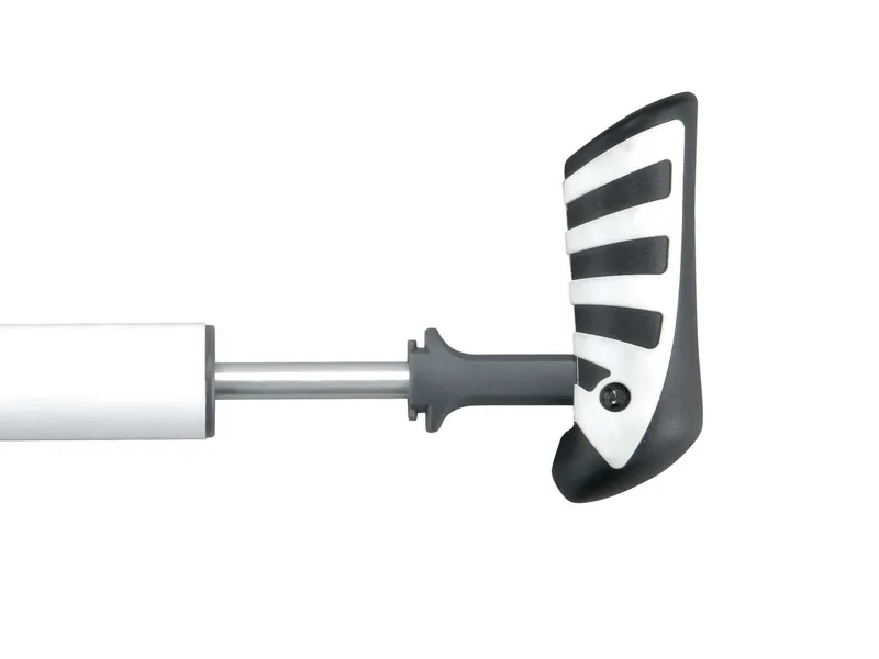 SmartHead® works with Presta and Schrader valves without swapping parts. Folding T-handle with dual density polymer grip provides better leverage and comfort while pumping.
